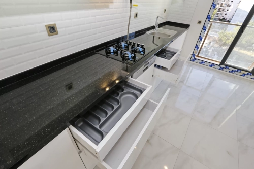 Her bir detayı titizlikle düşünülen Daire Tip 1 Açık Mutfak, geniş ve ferah odalarıyla ailelere ve bireylere konforlu bir yaşam alanı sunuyor.